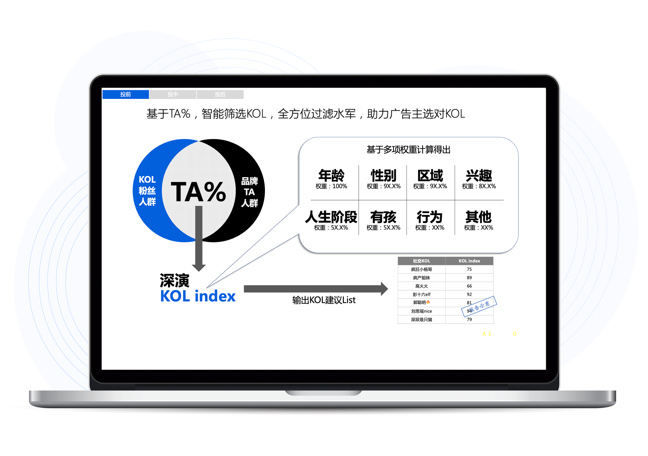 usdtK参谋科学前选可以跨领域找到最能影响品牌目标人群的KOL进行投放,同时有效平衡投资回报率